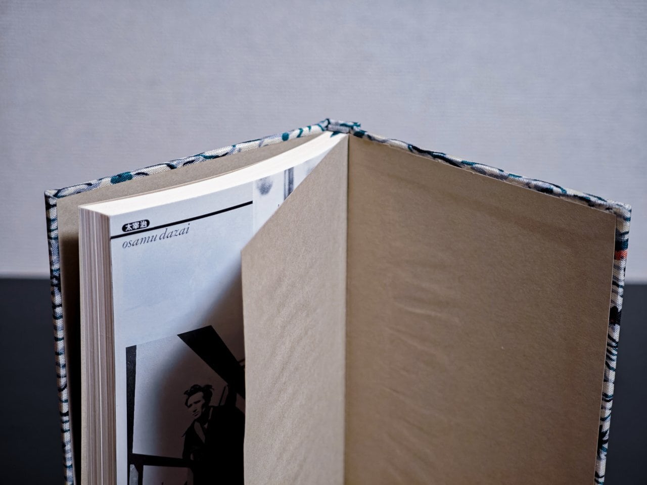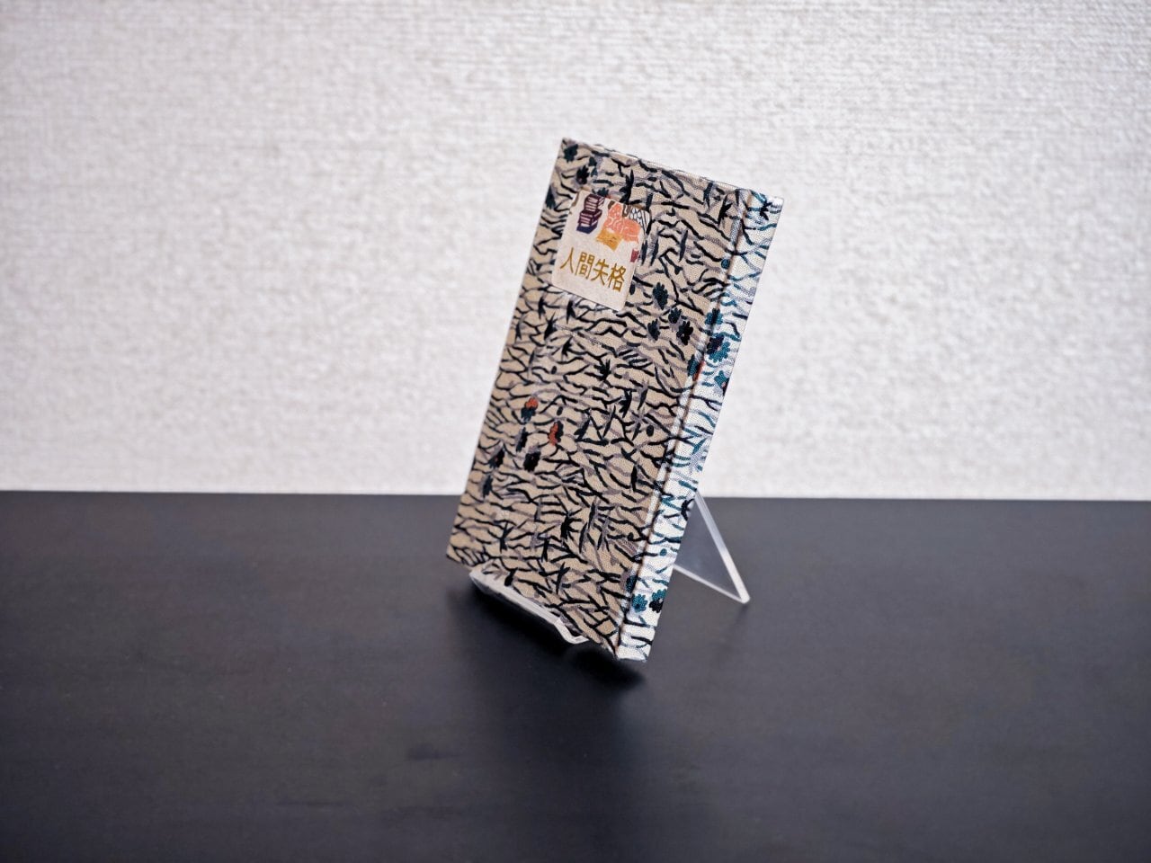「着物の端切れ」を表紙に再利用したハードカバーに改装。下呂市の青空市で偶然入手した着物の端切れです。葉蔵が心中した女の着物...という連想から仕上げております。